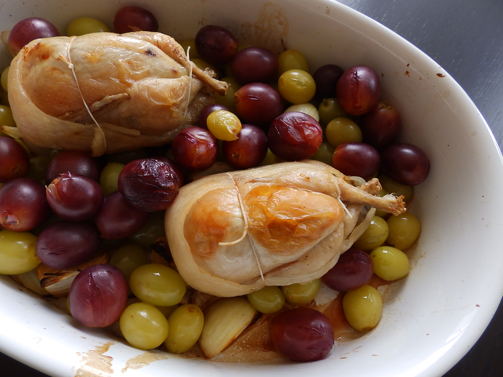 The fat keeps them from drying out. The string is, as it turns out, not so they’ll look more demure. It helps them to keep their shape and to cook evenly. I can attest to the fact that the little quail who made it onto my plate was neither dry nor unevenly cooked.