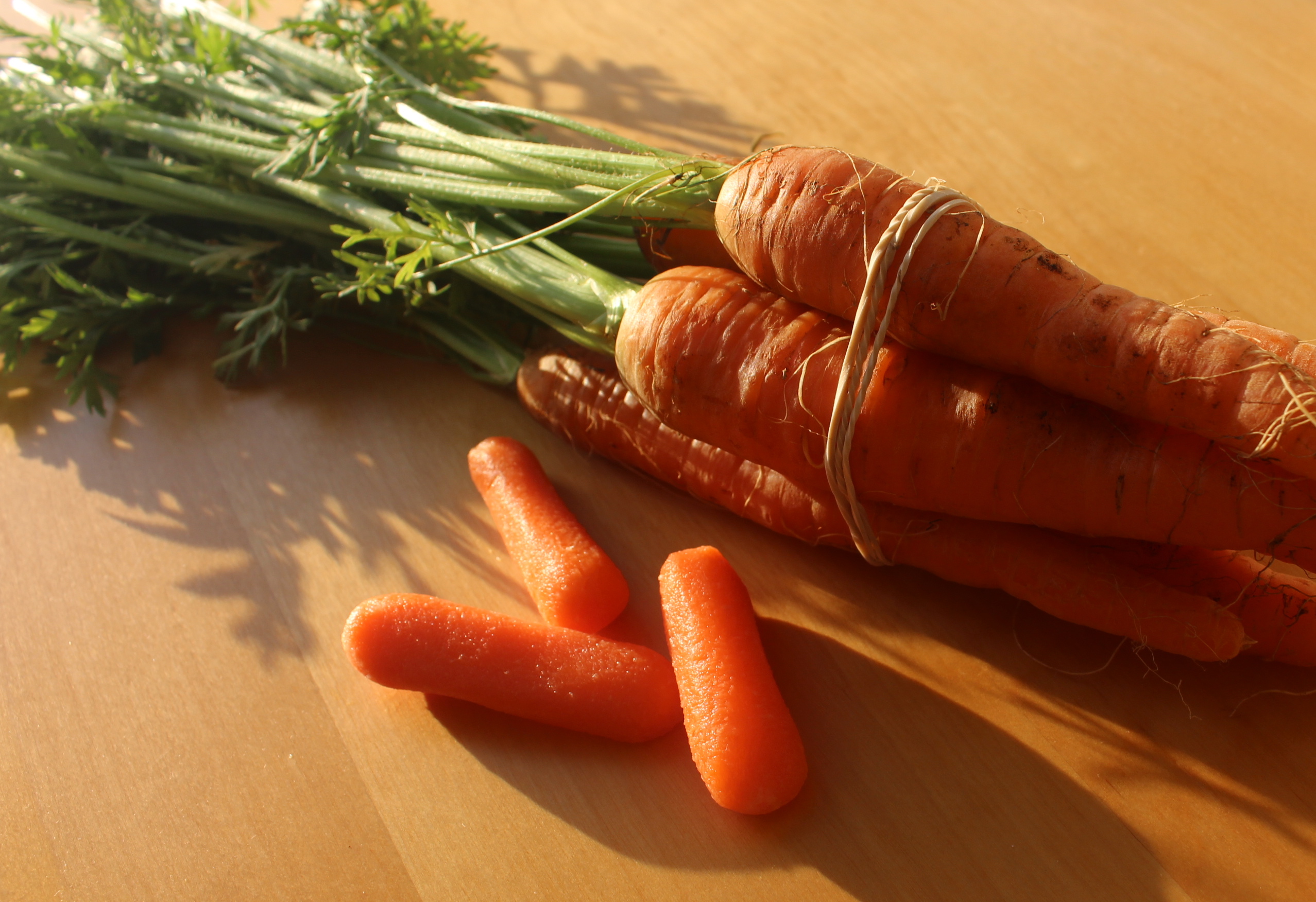 When you wander through the fantastical vegetable patch in “Carrots,” recipes come to mind—carrot cake, carrot pudding, beef stew. Some of these dishes seem more akin to winter than summer. I love beef stew with carrots, and on a Sunday afternoon in January, I cook my mother’s recipe for beef stew in a tomato sauce (with carrots and onions). The carrots always taste sweeter after slowly cooking for hours.