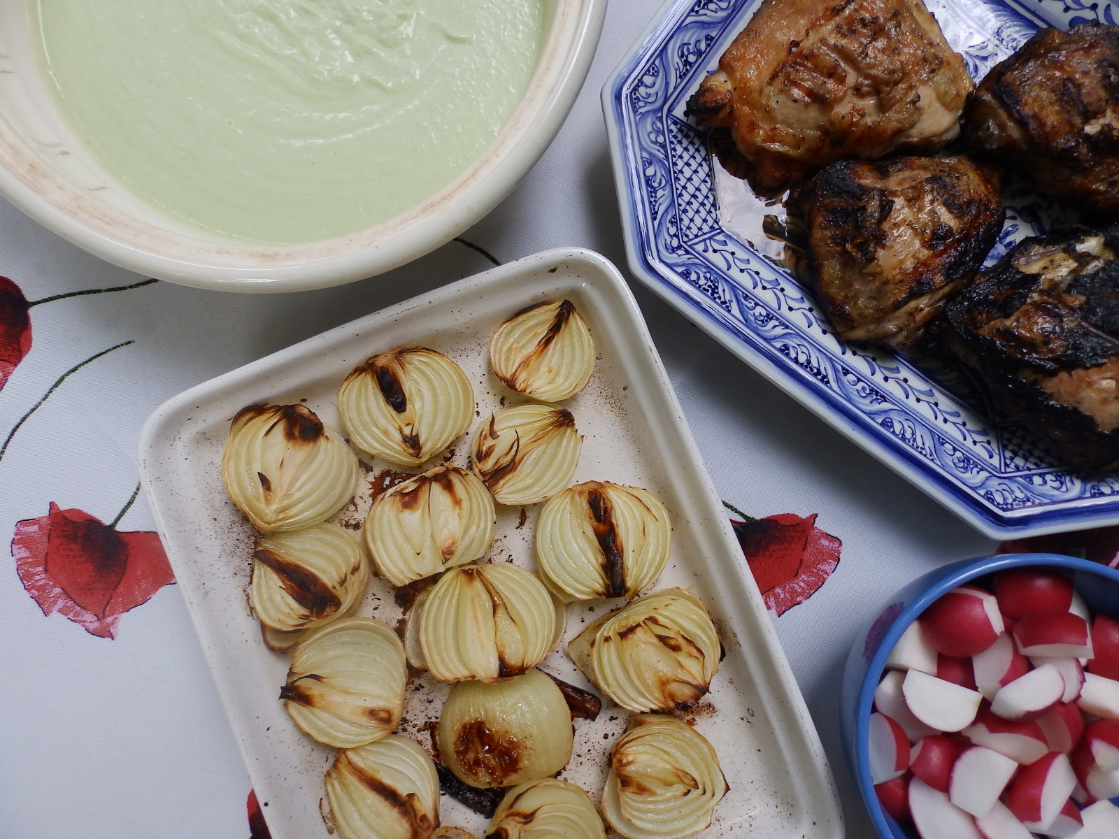 - Roasted onions with herb vinaigrette